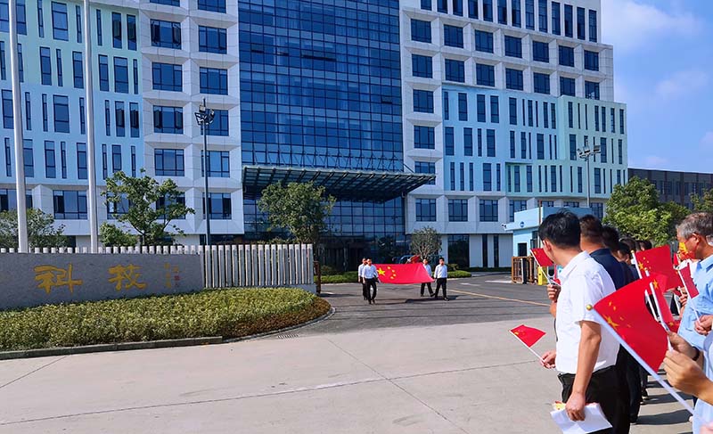 9時28分,升旗儀式正式開始。在眾人的注目下,四名旗手護衛(wèi)著國旗入場。伴隨著激昂的《義勇軍進行曲》,鮮艷的五星紅旗冉冉升起。緊接著,在《明天會更好》的動人旋律中,錦蕭科技司旗也緩緩升起。鮮紅的國旗和錦蕭的司旗在公司生產基地上空迎風飄揚,給員工堅定的信念和無限的力量!